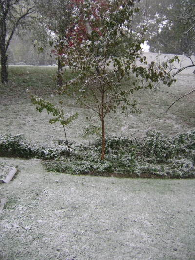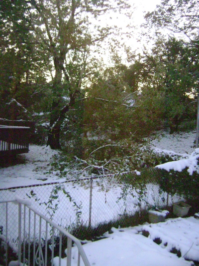 We had about five inches of the white stuff yesterday from this unusual snowstorm. Luckily, we did not lose power, although the lights flickered often and the internet cut out once. Here’s a few pictures from around the house: