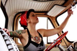 These are not models. They are everyday women, moms and wives showing their sexy side. Now, maybe a modern pinup girl shoot is not the answer to reclaim the sexy in your life. It doesn’t have to be so extreme. It could be something as small as wearing heels under the desk while you are working on your WIP. Or, buying a shade of lipstick more red than you would normally wear, AND WEAR IT EVEN IF YOU WON”T SEE A SOUL THAT DAY.  If you have long hair usually in a barrette, go to your stylist and tell them you want bangs to frame your face. (It’s just hair, it will grow back.)